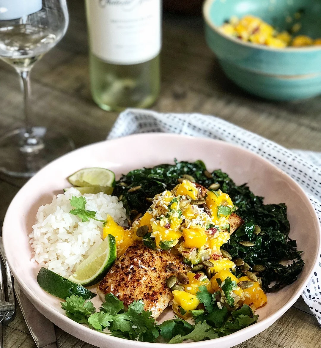 While chicken cooks, heat up sauce in a pan on the stove. When chicken is done, add it to the sauce and serve with jasmine rice, cauliflower rice, brown rice, or whatever your heart desires!